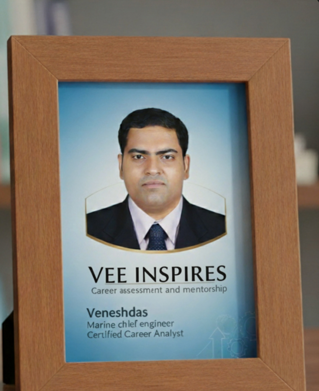 Mr. Veneshdas Haridas is the founder of VEE INSPIRES, a career assessment and consulting firm dedicated to guiding students and professionals toward clarity, confidence, and success in their chosen paths. With a unique blend of expertise as a Marine Chief Engineer, Certified Career Analyst, Psychological Counselor, and Soft Skills Trainer, he brings both technical mastery and human understanding to his mentorship.